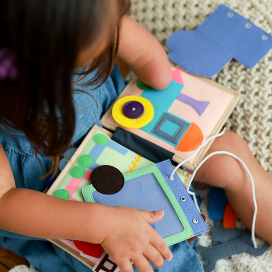 Educating AMY's quiet books are all Montessori inspired and come in two sizes: the larger and busier maxi quiet books or the travel-friendly mini quiet books.