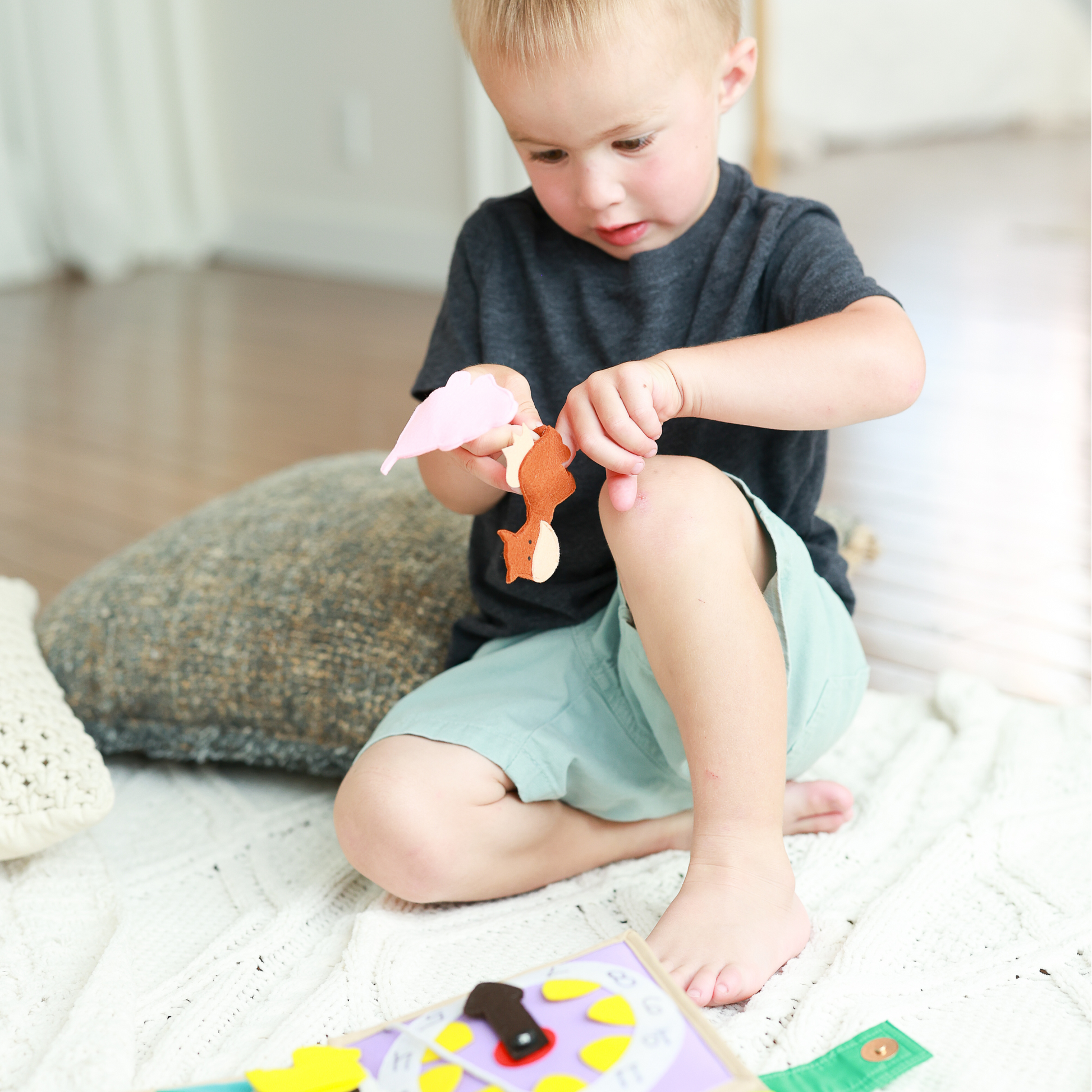 No matter where you go, every piece of your busy book can come with you. There is storage for every single piece and even any additional booster packs that you may purchase. Every book has an enclosing clasp that every child can easily use to shut their busy book and take it on the go.