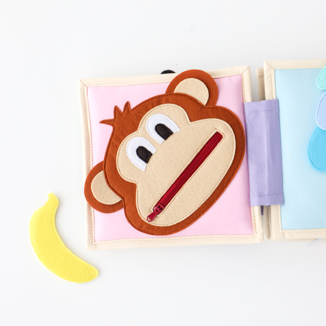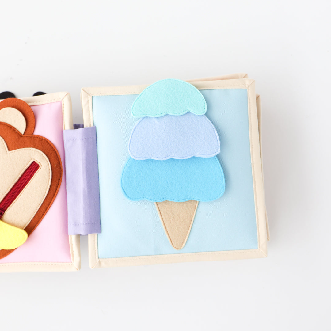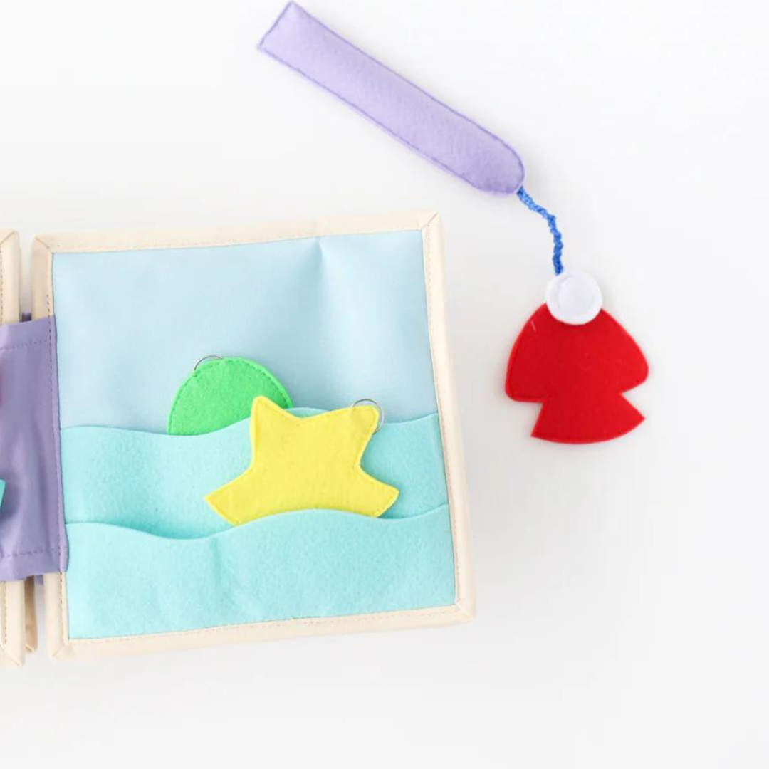 A delightful journey for little hands and curious minds! This cute-as-a-button book develops threading, hand-eye coordination and color recognition. With magnetic fishing, finger puppets with their favourite foods (matching), zippers, shading matching, small to large and an elasticated buttons, perfect for little fingers. Recommended Age: 18 months - 4 years old.